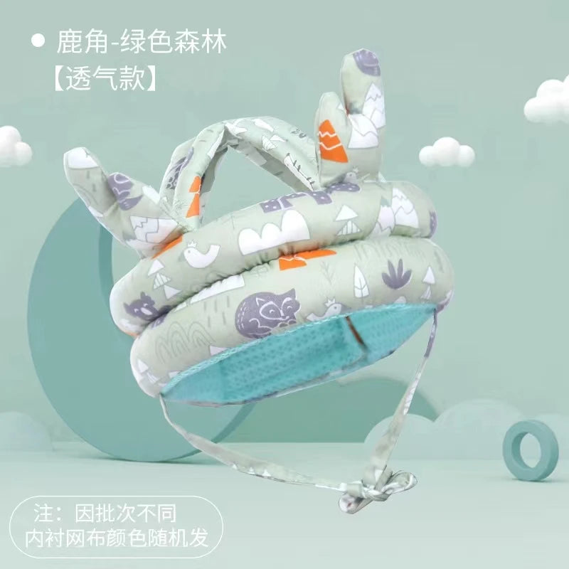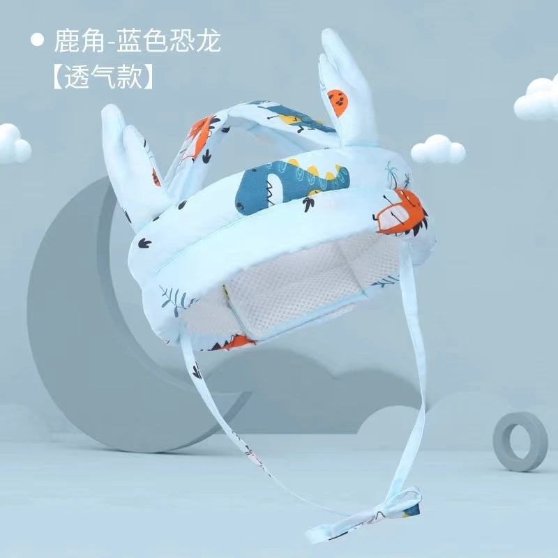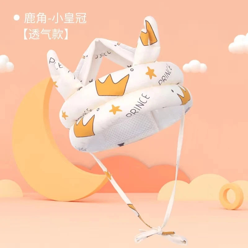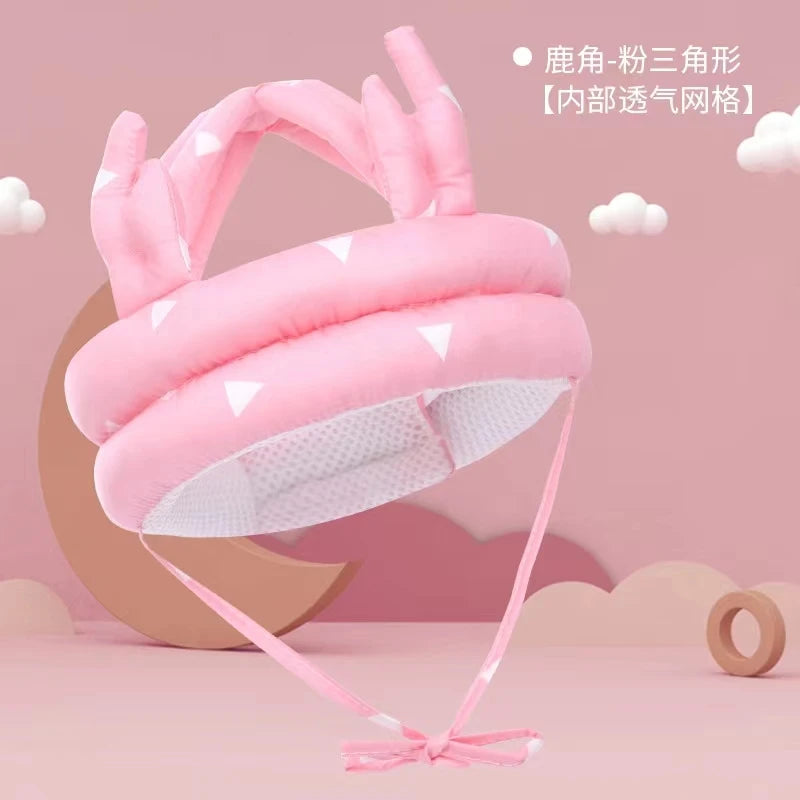 Lightweight, cushioned head protection for new walkers and busy explorers—soft cotton comfort with an adjustable fit.