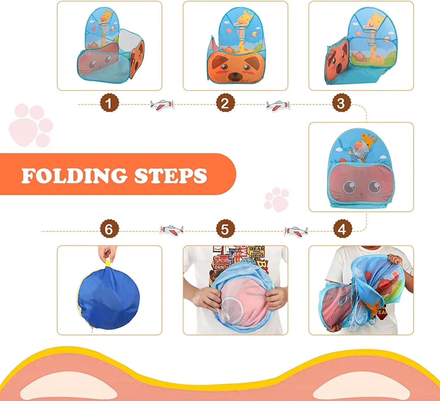 Create a bright, contained play space in seconds. This foldable ball pool tent pops open for instant fun and folds flat into a compact shape when you’re done. The cheerful animal, nature, sports, and music motifs spark imaginative play, while the open-top design keeps things airy and easy to supervise. Lightweight and portable, it’s great for living rooms, playrooms, or shaded yard time.