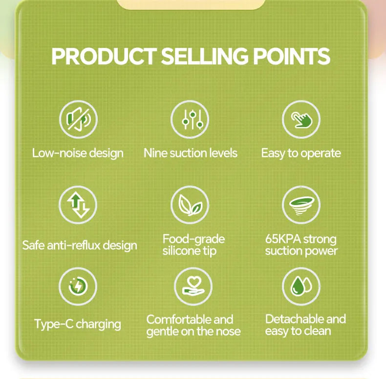9 adjustable suction levels for newborns and babies (0–12 months)