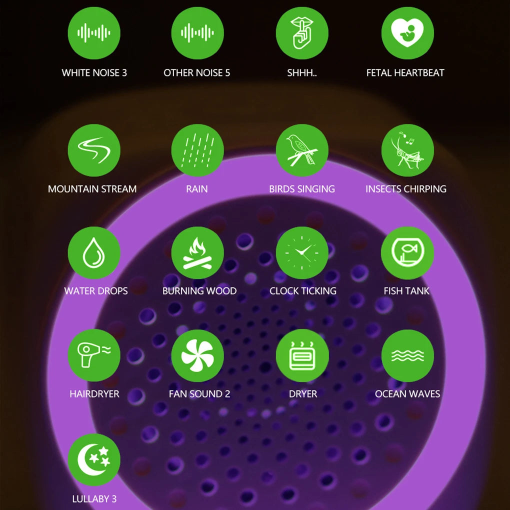 This compact and portable white noise sound machine features 26 soothing sound options designed to create a calming environment for both babies and adults. Its built-in 300mAh battery and USB power source allow easy use at home, in the office, or while traveling. By simulating the uterine environment, it helps babies sleep more peacefully and supports establishing a bedtime routine. The device’s natural, harmonious sounds effectively mask background noise, promoting deeper, more restful sleep. Crafted from durable ABS plastic, it includes a USB cable for convenient charging.