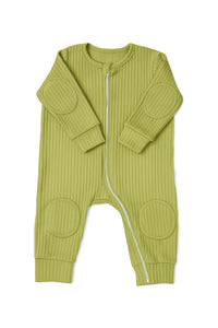 NurtureNauts Baby Romper Onesie – 100% Cotton, Double Zipper, Padded Knees & Elbows for Safety (Pastel Green, 12–18M)