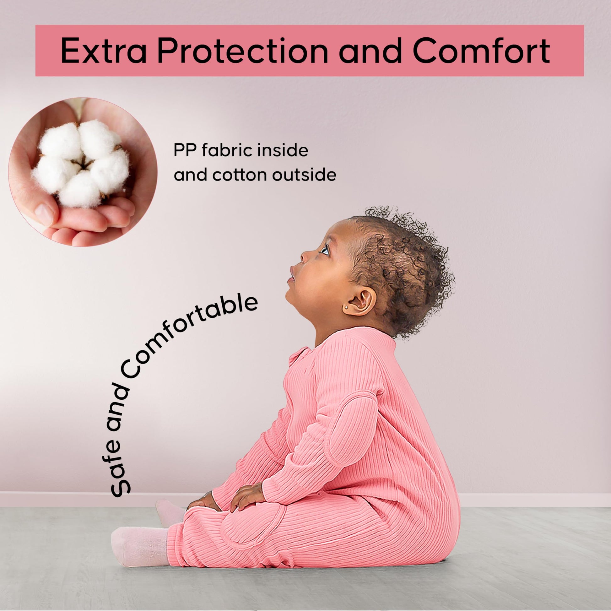 NurtureNauts Premium All Cotton Baby Romper - Double Zipper & Padded Protection Keep your little explorer safe and comfortable with our 100% Cotton NurtureNauts Baby Romper. Designed for active and playful babies, this romper is perfect for playtime at daycare or at home. Our romper features a double zipper and a tagless printed tag design, ensuring maximum convenience and irritation-free comfort for your baby’s sensitive skin. Safety is our top priority. The NurtureNauts Baby Romper is equipped with padded knee and elbow protection made from PP fabric inside and cotton outside, providing extra cushioning for your clumsy and hyperactive infant. The durable 100% cotton material is soft, breathable, and gentle on your baby’s skin, making it ideal for extended wear during playtime. Parents can embrace peace of mind knowing their baby is well-equipped to handle the bumps and falls that come with everyday adventures. The double zipper design allows for easy access for quick diaper changes and on-the-go clothing adjustments, while the tagless design eliminates fuss and annoyance from traditional clothing tags. This romper is not just a piece of clothing; it’s a thoughtful solution for parents looking to provide extra protection and comfort for their lively toddlers. Perfect for inattentive or impulsive infants, the NurtureNauts Baby Romper ensures your baby stays safe, comfortable, and happy during their daily explorations.
